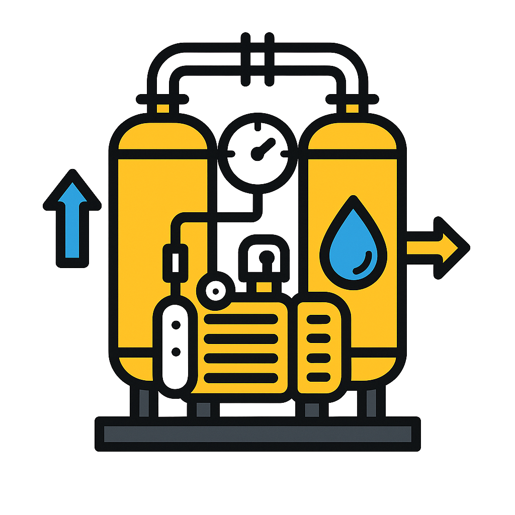 Fidar Compressor Adsorption Dryers utilize a desiccant bed to achieve a compressed-air dew point ranging from -10°C to -70°C. This system provides dry, stable, and moisture-free air, suitable for sensitive industrial processes.