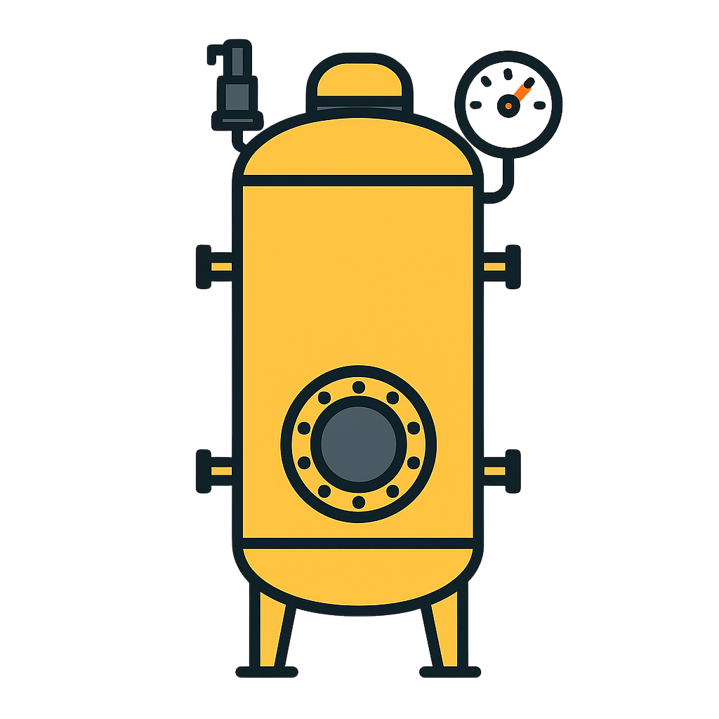 Fidar Compressor Pressure Vessels are designed and manufactured in accordance with ASME standards. They serve to store compressed air, stabilize system pressure, and enhance the efficiency of the compressed-air network. Their robust construction, combined with hydrostatic testing, ensures the safety, reliability, and durability of the vessels.